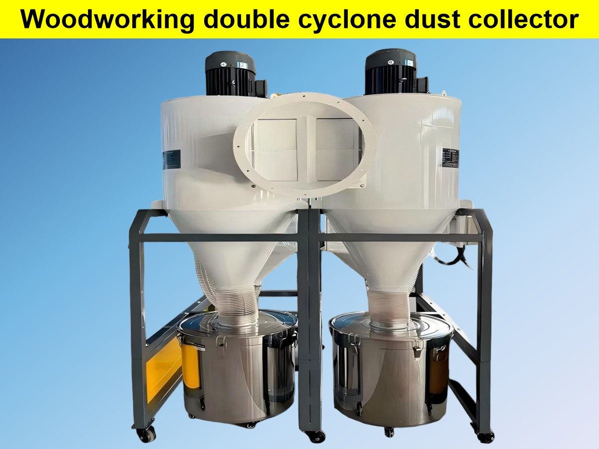 Podwójny cyklonOdpylacze drewnasą stosowane głównie w połączeniu ze sprzętem do obróbki drewna, takim jak piły tarczowe, piły wielopiłowe, strugarki, frezarki i rozdrabniacze do drewna, gdzie powstają duże ilości grubego/średniego pyłu. Stosowane są również jako jednostki podczyszczające w scentralizowanych systemach odpylania w dużych i średnich zakładach obróbki drewna, służąc jako jednostki podczyszczające dla odpylaczy kasetowych w celu zmniejszenia zużycia mediów filtracyjnych. Do samodzielnego odpylania w małych i średnich warsztatach obróbki drewna, gdzie wymagania dotyczące drobnego pyłu nie są duże (np. emisja niebezpośrednia, dobra wentylacja warsztatu), można je stosować samodzielnie. Wreszcie nadają się do scenariuszy odzyskiwania pyłu wymagających odzysku gruboziarnistych/średniej wielkości zrębków drzewnych, na przykład przy przetwarzaniu paliwa z biomasy i produkcji płyt wiórowych.